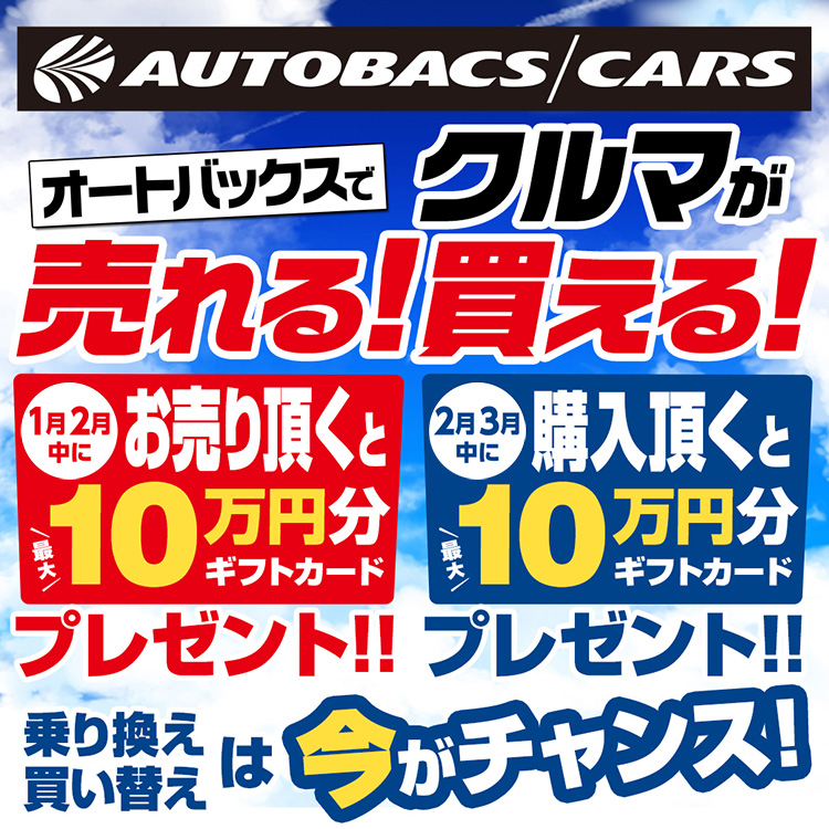 クルマを買っていただいた方に最大10万円分のギフトカードプレゼント – 2026年2月・3月 オートバックスでのクルマ購入がお得!