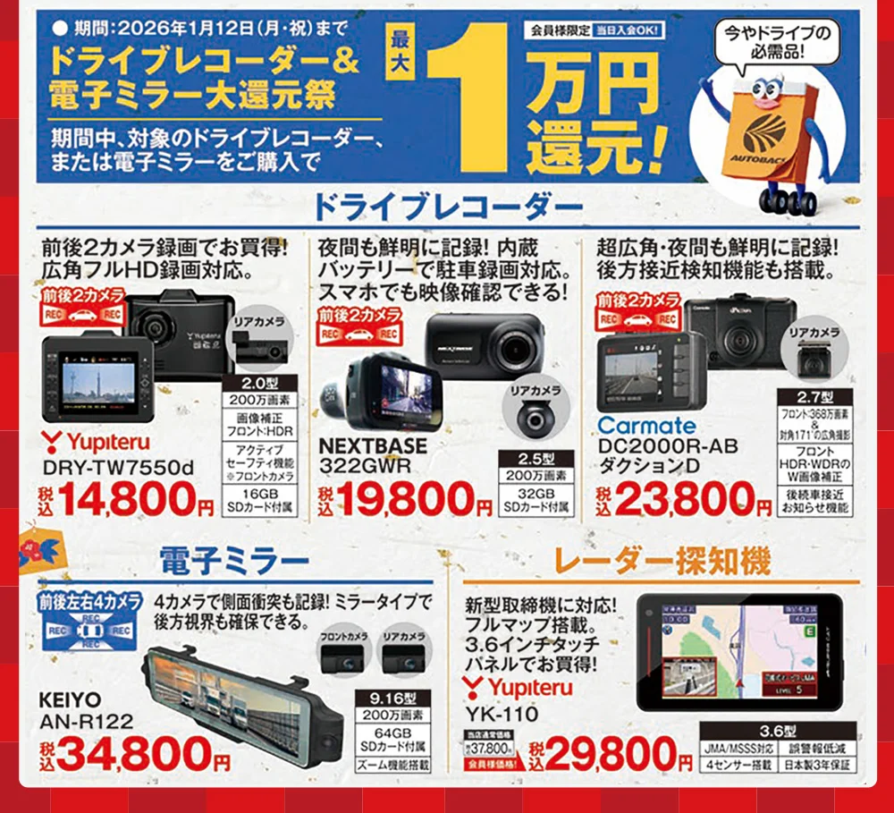 2026年も魅力的な特徴を徹底的にご説明&納得できる買い物のお手伝いをさせていただきます。ドライブを快適・便利にするカー用品のことはオートバックスへお気軽にご相談ください。