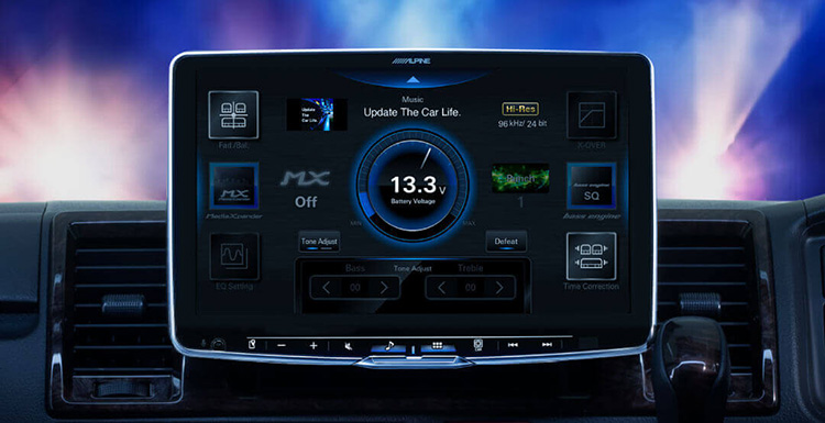 音楽好きのためのハイレゾ対応、新デザイン・サウンドホームで音を操り格別なドライブを。Apple Carplay/Android Auto、HDMI入出力/AUX入力/アルパインダイレクト接続に対応。スマホアプリの動画を楽しめる他に幅広いシステムアップが可能。