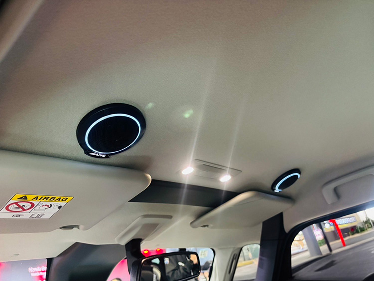 降り注ぐサウンド、響き渡る重低音。市販初のルーフスピーカー&ドアウーファーのレイアウト。車室内を包み込む、全身で感じる圧倒的サウンドへ生まれ変わります。