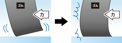 高密度化し剛性を確保することで倒れ込みを防ぎ、接地形状を維持。